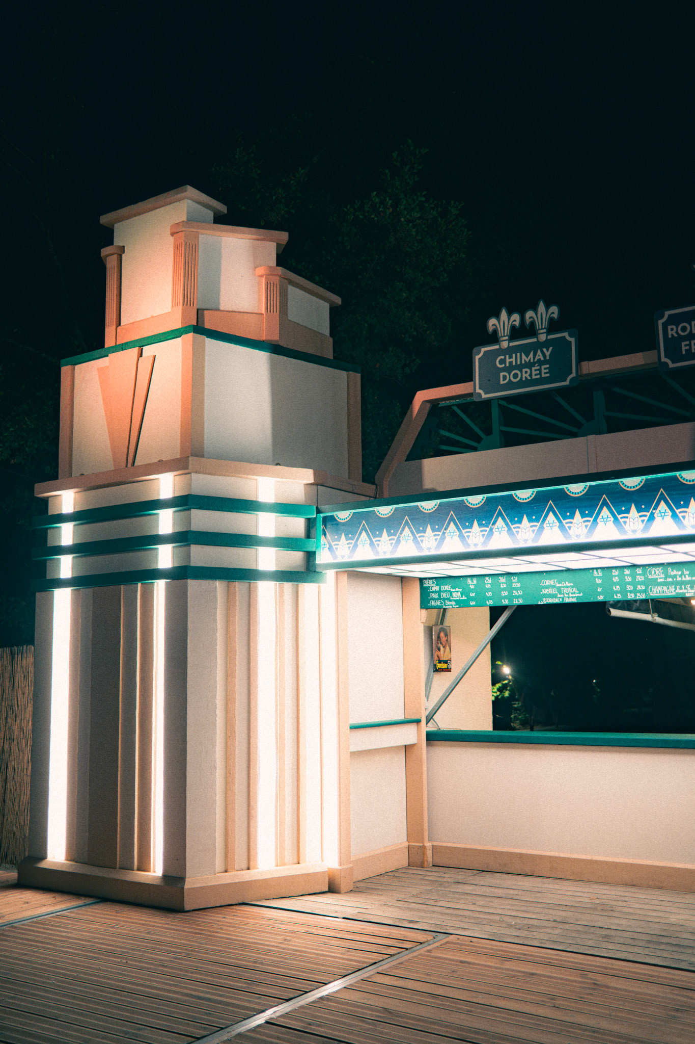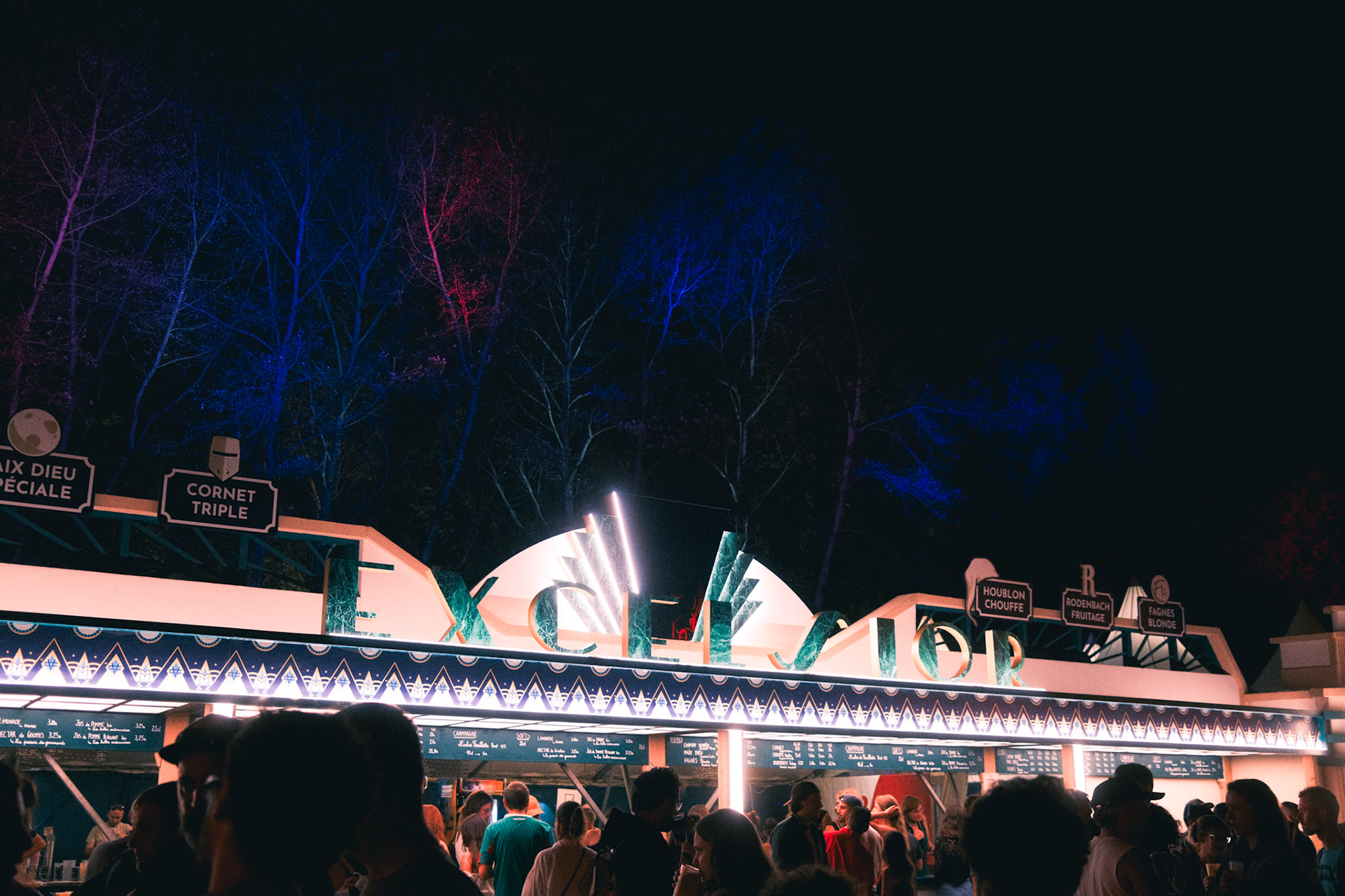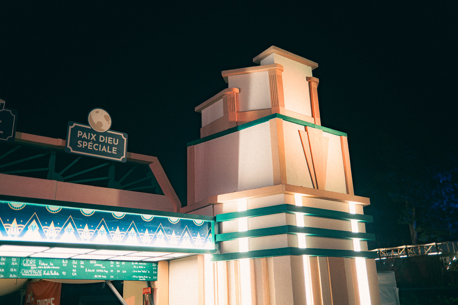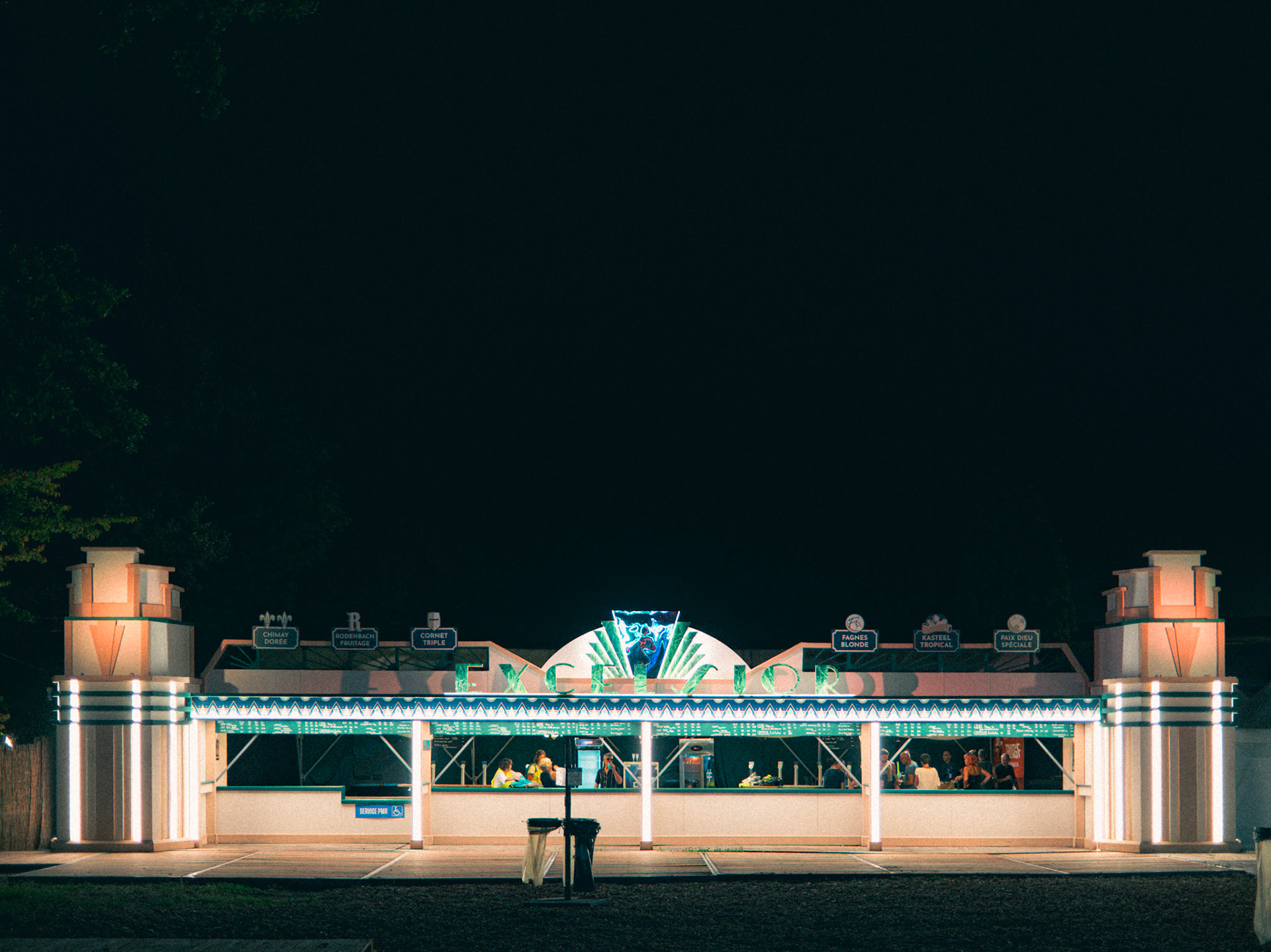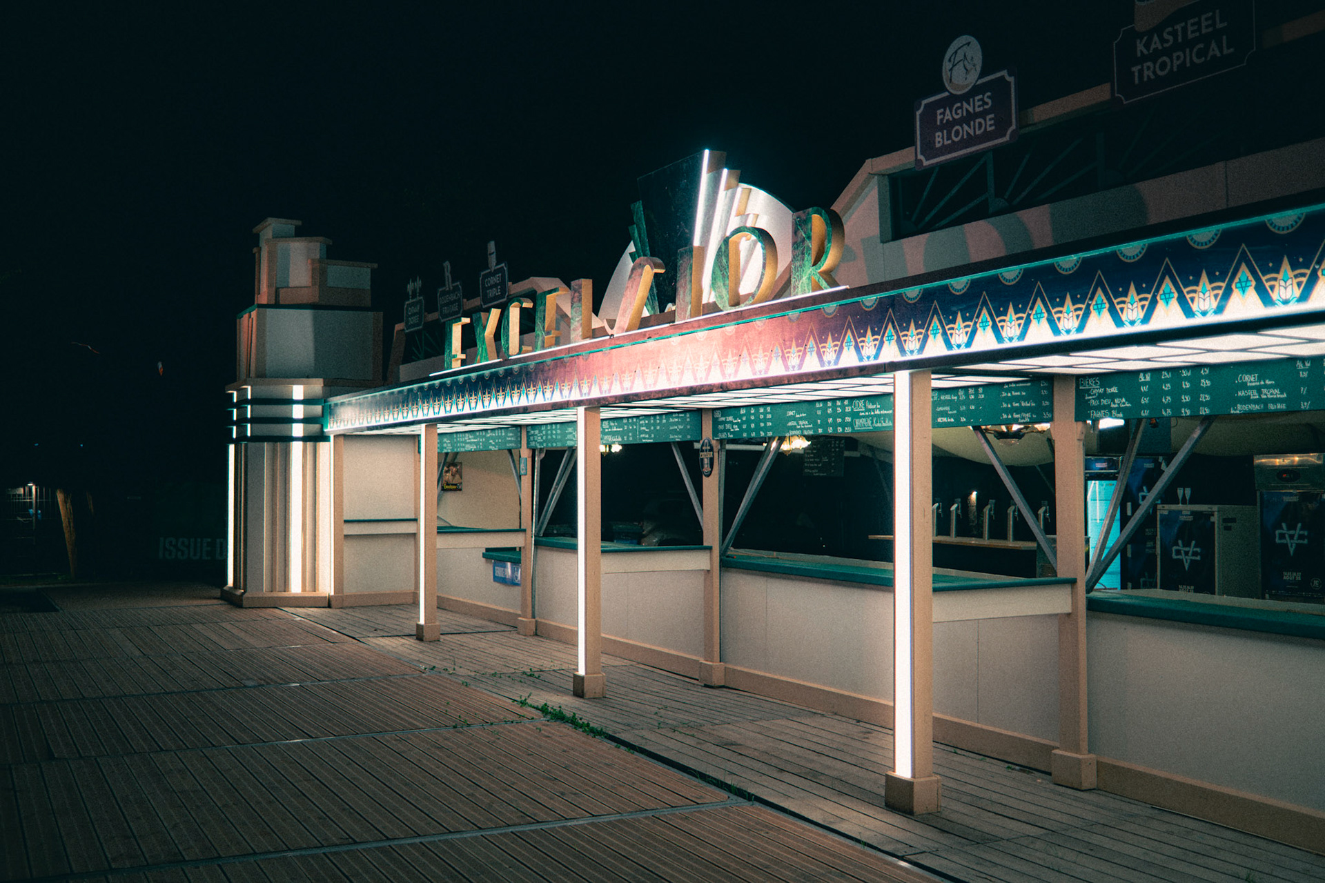 In 2023, the festival Cabaret Vert needed a belgian beers bar to support its existing overcrowded one. The decoration team asked me to design Excelsior, a standalone Art-Deco counter inspired by a nearby historic building that once housed the "Bar Excelsior" in the Arches neighborhood. The goal was to honor local architecture while providing a functional and memorable festival structure.