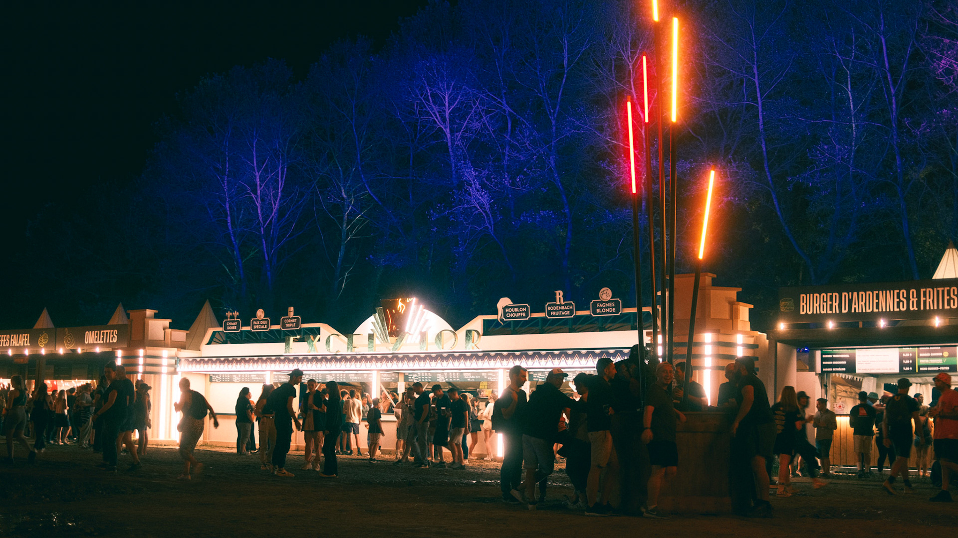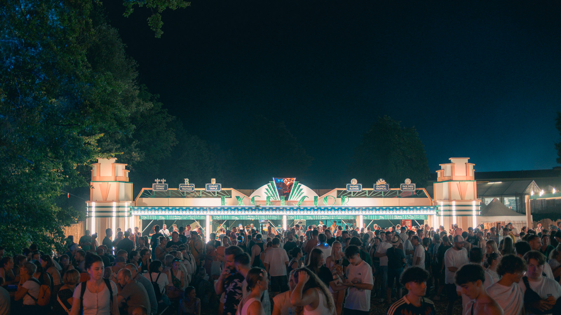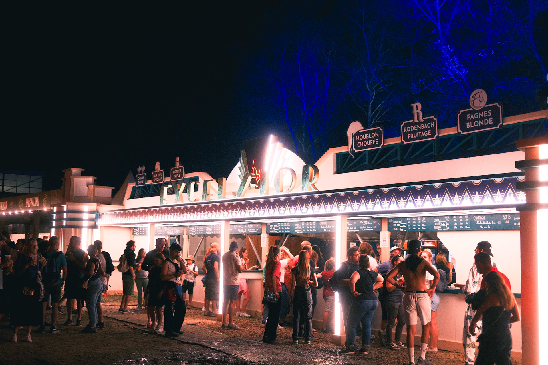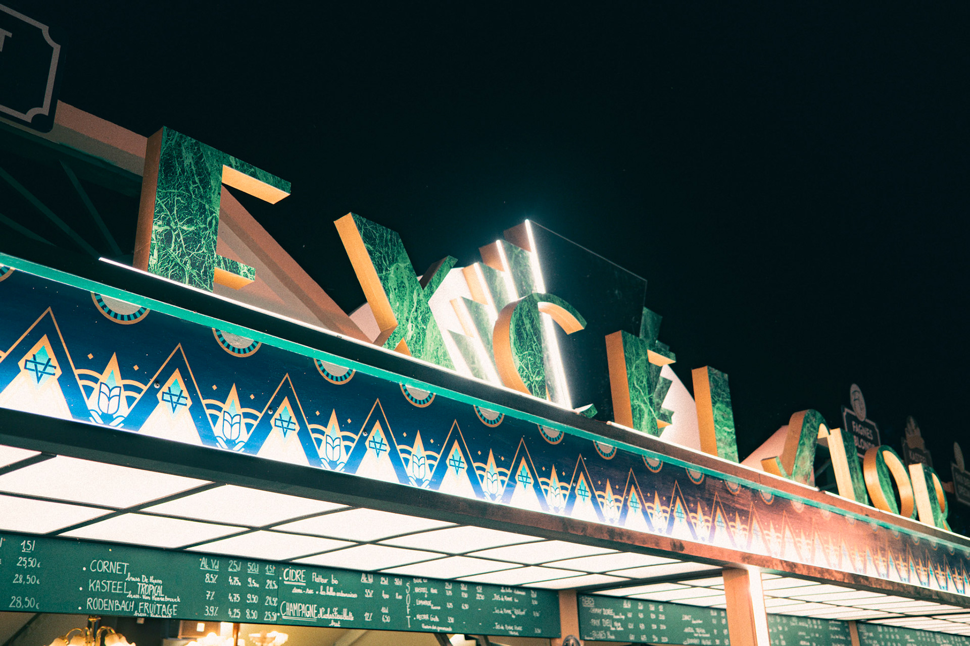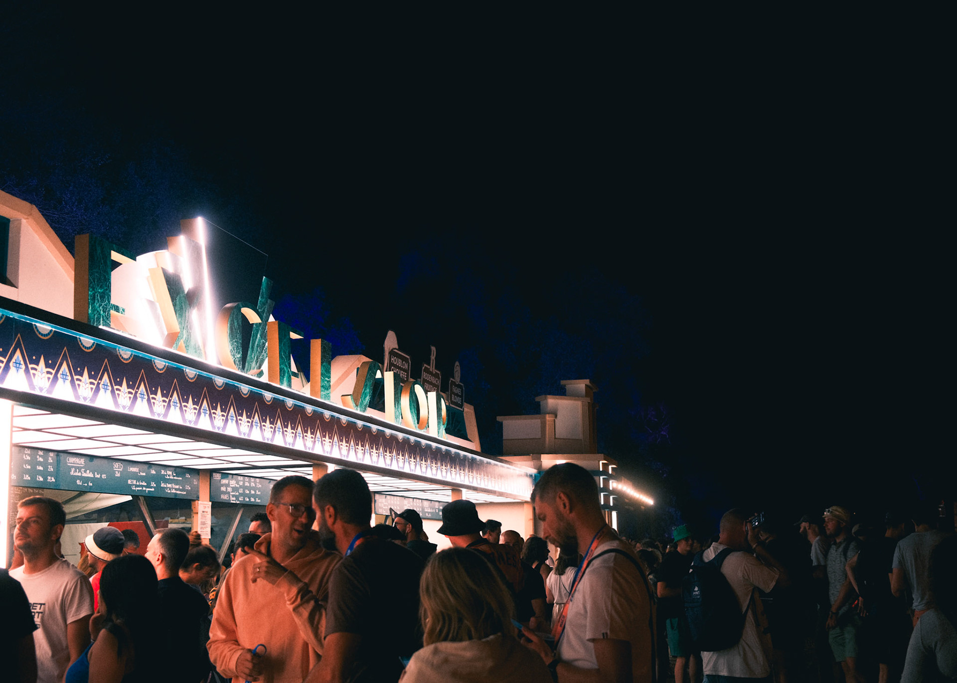 In 2023, the festival Cabaret Vert needed a belgian beers bar to support its existing overcrowded one. The decoration team asked me to design Excelsior, a standalone Art-Deco counter inspired by a nearby historic building that once housed the "Bar Excelsior" in the Arches neighborhood. The goal was to honor local architecture while providing a functional and memorable festival structure.
